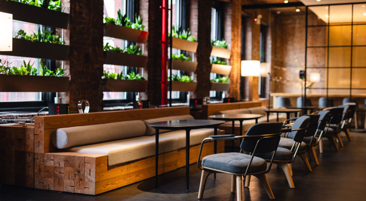 The studio spans 3,588 sq ft, accommodating 50–70 guests for the whole space. Specific seating capacities include 16 in the Lounge, 6 at the Sushi Counter, 6 in the Conference Room, and 5 in the Recording Studio. Please note that actual capacity may vary depending on the layout.