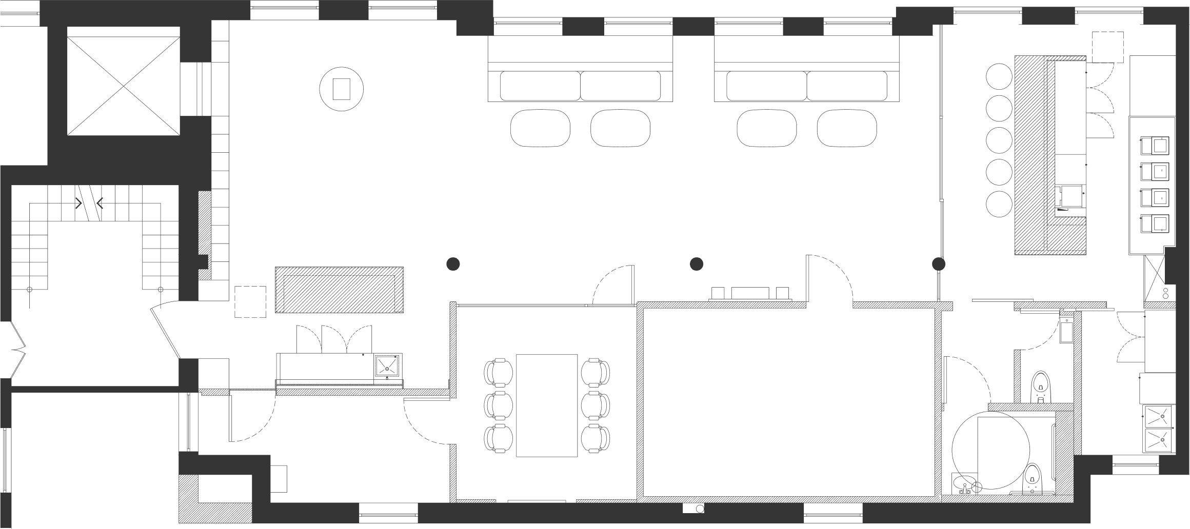 A counter area adjacent to the Main Studio, designed for communication and breaks. It is suitable for reception drinks, casual meetings, or serving coffee. Notably, the counter is designed to function as a sushi counter, making it perfect for exclusive omakase dining events or catering.